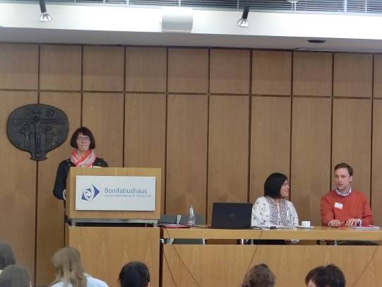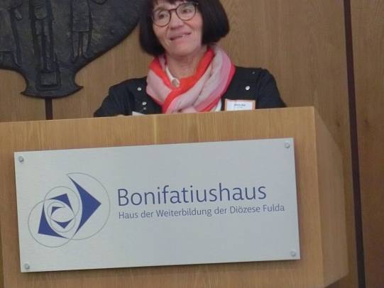 Bereichert wurde der Fachtag durch eine Ausstellung zum Thema Kinderrechte und Adultismus, die Studierende der Fachschule für Sozialpädagogik – Marienschule in Fulda – mit ihrer Zweigstellenleiterin Julia Wißner erarbeitet hatten und nun den Teilnehmenden präsentierten. Die spirituelle Rahmung erfolgte durch Diakon Dr. Martin Nitsche, der am Beginn und Ende des Tages biblische Bezüge zum Buch Jona herstellte.